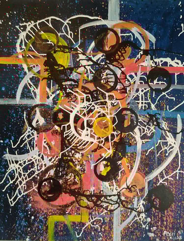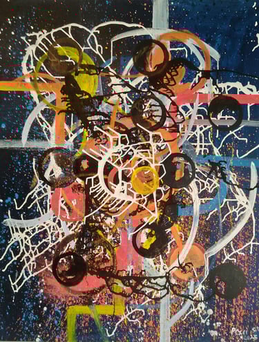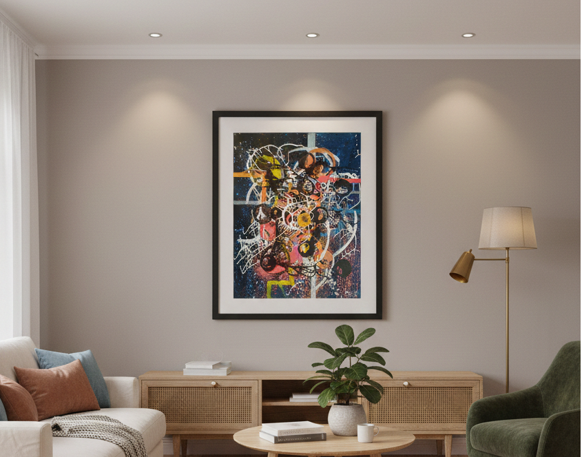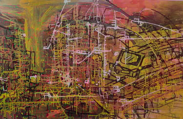 Esta obra nasce do encontro entre impulso e construção, um território onde o pigmento deixa de ser suporte e passa a ser linguagem. Não há tela para conter, apenas o movimento inicial, o ponto zero, o instante em que tudo ainda pode ser.