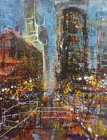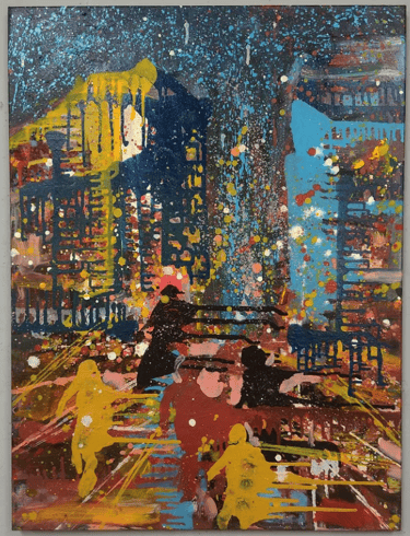 Óleo sem tela "Cidade Pulsante"
